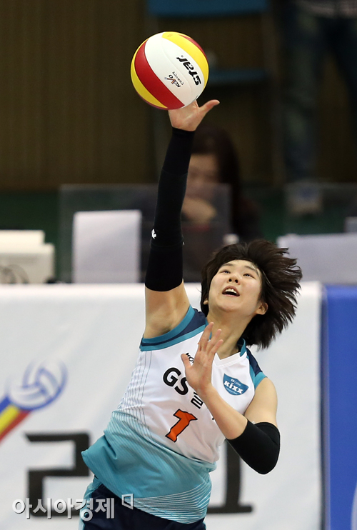 [수원=아시아경제 정재훈 기자] 17일 오후 수원실내체육관에서 열린 NH농협 2013-2014 V리그 여자부 현대건설과 GS칼텍스의 경기. GS칼텍스 이소영이 서브를 넣고 있다.