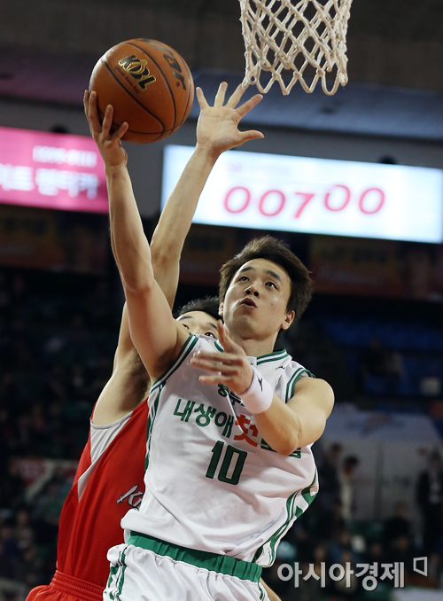 [아시아경제 정재훈 기자] 3일 오후 서울 잠실학생체육관에서 열린 KB국민카드 2013~2014 프로농구 SK와 동부의 경기. 동부 김현호가 레이업슛을 시도하고 있다.