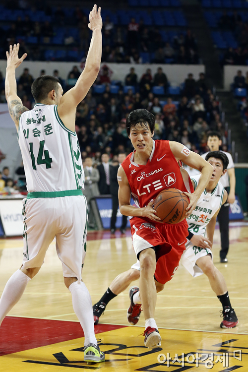 [아시아경제 정재훈 기자] 3일 오후 서울 잠실학생체육관에서 열린 KB국민카드 2013~2014 프로농구 SK와 동부의 경기. SK 김선형이 돌파를 시도하고 있다.