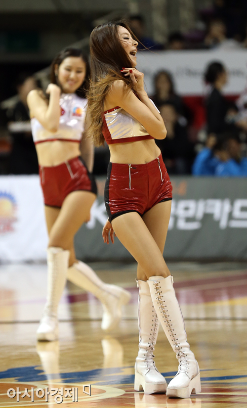 [안양=아시아경제 정재훈 기자] 7일 오후 안양실내체육관에서 열린 KB국민카드 2013~2014 프로농구 KGC와 모비스의 경기. KGC 치어리더가 공연을 펼치고 있다.