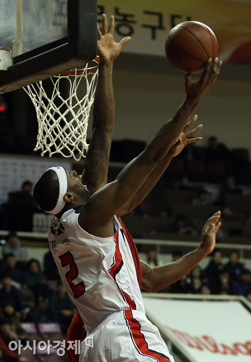 [안양=아시아경제 정재훈 기자] 7일 오후 안양실내체육관에서 열린 KB국민카드 2013~2014 프로농구 KGC와 모비스의 경기. 모비스 로드 벤슨이 슛을 시도하고 있다.