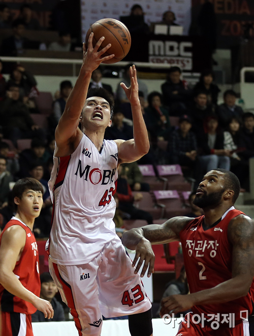 [안양=아시아경제 정재훈 기자] 7일 오후 안양실내체육관에서 열린 KB국민카드 2013~2014 프로농구 KGC와 모비스의 경기. 모비스 이대성이 슛을 시도하고 있다.
