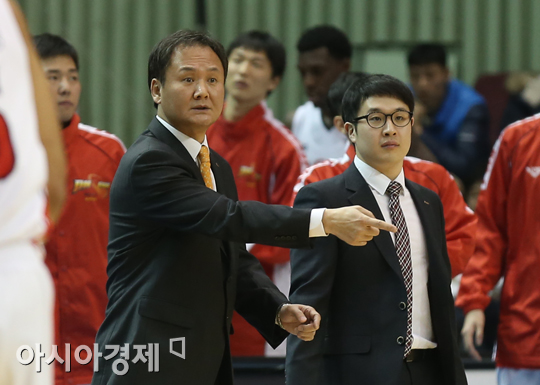 [아시아경제 정재훈 기자] 10일 오후 서울 잠실실내체육관에서 열린 'KB국민카드 2013~2014 프로농구' 삼성과 모비스의 경기. 유재학 감독이 지시를 내리고 있다.