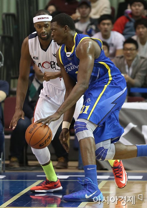 [아시아경제 정재훈 기자] 10일 오후 서울 잠실실내체육관에서 열린 'KB국민카드 2013~2014 프로농구' 삼성과 모비스의 경기. 삼성 더니건이 돌파를 시도하고 있다.