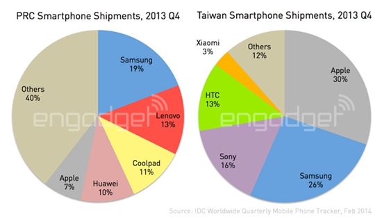 한편 타이완 시장에서는 애플이 점유율 30%로 1위를 기록했고, 26%의 삼성이 2위를 차지했으며, 16%의 소니가 3위를, 13%의 HTC가 4위를, 그리고 3%를 차지한 샤오미가 5위를 기록했다.