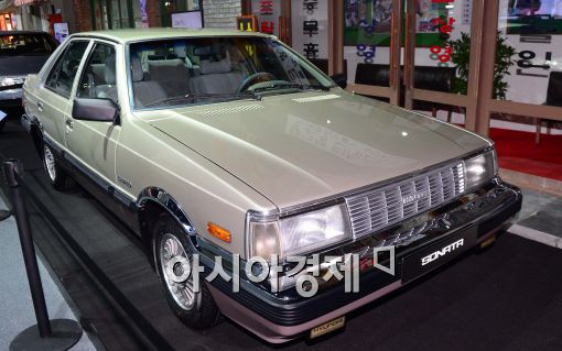 [아시아경제 최우창 기자]25일 서울 강남구 삼성동 코엑스에서 열린 글로벌 프리미엄 중형차 'LF 쏘나타' 출시 행사장에서 1985년 10월에 출시된 2000cc급 1세대 쏘나타 차량을 전시하고 있다.