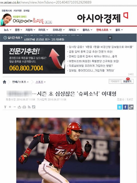 [아시아경제 나석윤 기자]기자는 지난 7일자 본지 26면 머리기사에서 프로야구 KIA 이대형 선수(31)의 선전에 대해 보도했다. 지난해까지 LG에서 부진하던 이 선수는 이적 후 신들린 듯 활약하고 있다.