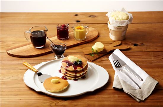 더라운지에서는 에쉬레 버터와 유기농 밀가루 반죽으로 갓 구워낸 뜨거운 팬케이크와 함께 에쉬레 버터 무염과 가염이 별도로 제공된다. 또한, 유기농 메이플 시럽, 블루베리, 라즈베리, 오렌지로 구성된 4종의 수제 시럽과 티 혹은 커피1잔이 세트로 제공된다. 가격은 4만9000원이다.