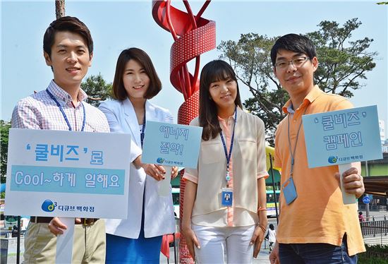 [아시아경제 장인서 기자]신도림 디큐브백화점 임직원들이 16일 오후 백화점 앞 디큐브파크에서 '쿨비즈(Cool Biz)' 옷차림을 선보이고 있다. 디큐브백화점은 에너지 절약에 동참하고 업무 효율을 높이고자 임직원을 대상으로 시원하고 간편한 옷차림인 '쿨비즈 캠페인' 시행에 나섰다.