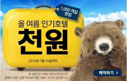 익스피디아 측은 "도시 별로 일주일 동안 1000원 호텔의 예약이 가능하며, 한정된 수량으로 객실 예약은 조기에 마감될 수 있다"고 전했다.
