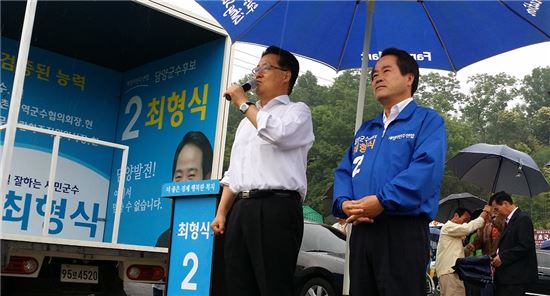 최형식 담양군수 후보(새정치민주연합)는 2일 박지원 의원과 이개호 전 전남도 행정부지사 등과 함께 담양읍 만성교 일대에서 유권자들에게 지지를 호소하는 합동연설회를 가졌다.