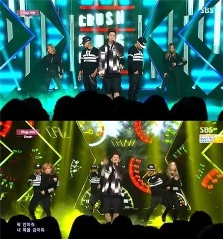 크러쉬는 29일 방송된 SBS '인기가요'에서 '허그 미'를 열창했다.