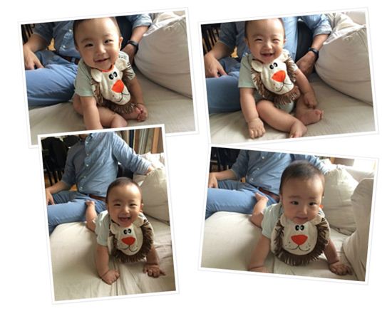 공개된 사진에는 박지윤의 아들이 사자 모양의 턱받이를 하고 환하게 웃고 있는 모습이 담겨 있다.
