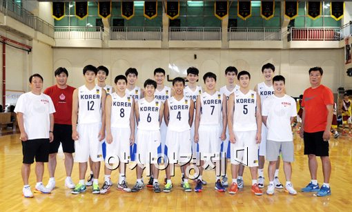 [용인=아시아경제 김현민 기자] 18세 이하 남자농구 국가대표팀이 11일 경기도 용인시 경희대학교 국제캠퍼스 체육관에서 훈련을 마치고 파이팅을 외치고 있다. 대표팀은 오는 19일부터 28일까지 카타르 도하에서 열리는 제23회 FIBA 18세 이하 아시아남자농구선수권대회에 출전한다.