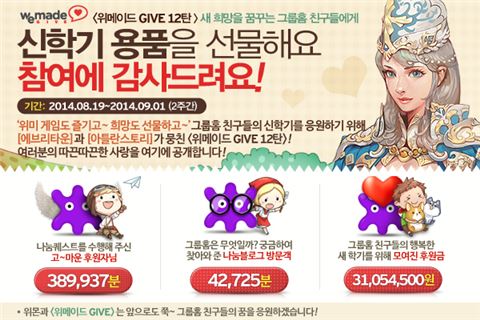 위메이드는 지난달 19일부터 지난 1일까지 모바일 게임 ‘에브리타운’과 ‘아틀란스토리’에서 게임 미션 완료 등을 통해 자동으로 후원금이 적립되도록 이벤트를 진행했다.