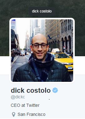 [아시아경제 양성희 기자] 딕 코스톨로 트위터 최고경영자(CEO)의 트위터 계정이 드디어 인증을 받았다.