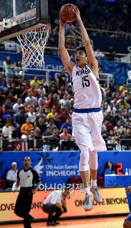 [안산=아시아경제 김현민 기자] 남자 농구 국가대표팀 김종규가 27일 인천 삼산월드체육관에서 열린 아시안게임 필리핀과의 8강 라운드 H조 3경기에서 호쾌한 덩크슛을 성공시키고 있다.
