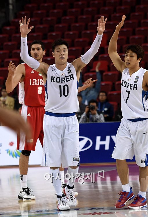 [인천=아시아경제 김현민 기자] 아시안게임 남자 농구대표팀 조성민이 3일 인천 삼산월드체육관에서 열린 이란과의 결승전에서 3점슛을 성공시키고 환호하고 있다.