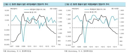 한국투자증권에 따르면 3분기 일본 IT업체들(세트 업체 4개와 부품 업체 6개)의 생산지수가 94.4로 상승했고, 가동률 역시 95.7%로 상승한 것으로 추정됐다. 이러한 양호한 IT지표는 일본 IT업체들의 매출액 호조에 기인하는 것으로 엔화 약세에 따라 일본 업체들의 가격경쟁력이 상승했고 국내 IT 업체들의 TV와 스마트폰 물량이 상대적으로 3분기에 부진하게 나타났기 때문이라는 분석이다.
