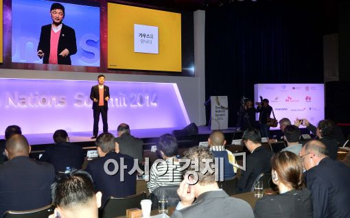 [아시아경제 최우창 기자] 24일 서울 광진구 워커힐호텔에서 '스타트업 네이션스 서밋 2014(Startup Nations Summit 2014)'가 열린 가운데 김범수 다음카카오 이사회의장이 기조연설을 하고 있다.