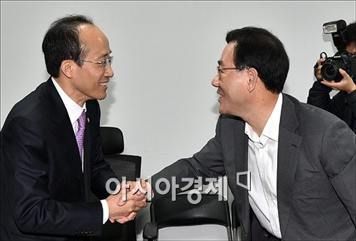 [아시아경제 윤동주 기자] 24일 서울 여의도 국회에서 정무위와 국무조정실과의 당정회의가 추경호 국무총리실장, 정우택 정무위원장등이 참석한 가운데 열리고 있다.