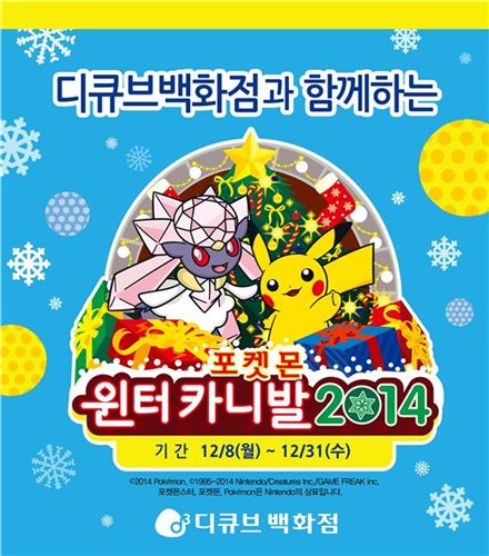 [아시아경제 송화정 기자] 대성산업이 운영하는 디큐브백화점은 겨울을 맞아 ㈜포켓몬코리아와 함께 대규모 '포켓몬 윈터카니발'을 오는 8일부터 31일까지 개최한다고 5일 밝혔다.