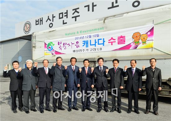 10일 배상면주가고창LB(대표 안재식)는 자사 복분자주 브랜드인 ‘복분자음’의 캐나다 수출 컨테이너 작업과 함께 수출 기념식을 진행했다.