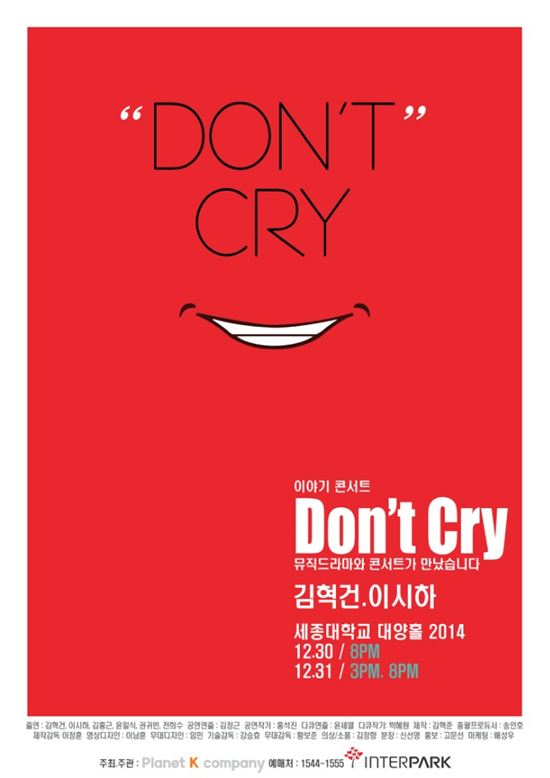 공연 주최 주관사인 플래닛K 컴퍼니 측은 "공연 제목인 '이야기 콘서트 Don’t cry 뮤직드라마와 콘서트가 만났습니다'라는 문구처럼 울지 말고 웃자는 의미에서 티저 포스터를 제작했다"고 전하며 "공연장에서 김혁건이 노래하는 모습을 보는 것만으로도 관객들은 포기하지 않을 ‘희망’을 느낄 수 있을 것이다. 관객 모두가 느낄 수 있을 희망, 기적을 보여줄 무대를 만들겠다"라고 기획의도를 밝혔다.