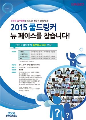 [아시아경제 이광호 기자]디아지오코리아는 전국 대학생을 대상으로 건전음주 문화 캠페인 '쿨드링커(Cool Drinker)' 홍보대사 6기를 모집한다고 11일 밝혔다.