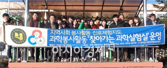 [아시아경제 노해섭 기자]호남대학교 ICT융복합기술인력양성사업단(단장 이양원)은 26일 광주광역시 광산구 평동중학교(교장 김정인)에서 3학년 재학생을 대상으로 과학봉사활동 ‘찾아가는 IT과학실험실’ 프로그램을 실시했다.
