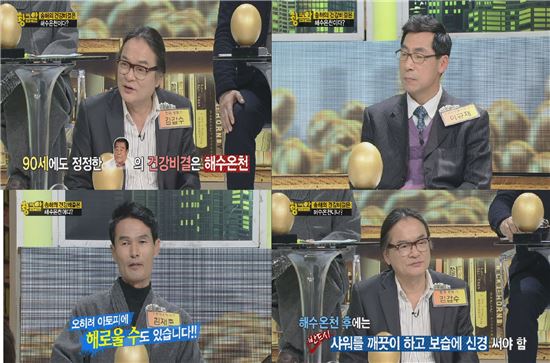 지난 29일 오후 방송한 종합편성채널 MBN 예능프로그램 '황금알'에서는 건강 유지에 탁월한 다양한 물 건강법이 공개됐다.