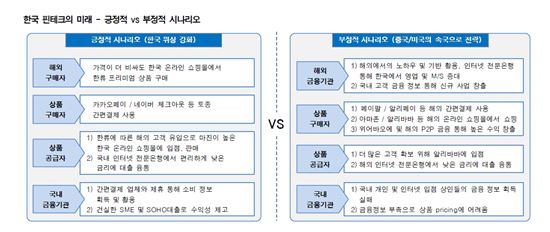 김 연구원은 "우리는 분명 핀테크 산업에 있어서 '골든 타임'에 처해 있다"며 "지금이라도 우리만의 핀테크를 적시에 제대로 육성하지 못한다면 금융, ICT를 시작으로 전방위적으로 경제 주권을 잃어버리는 것은 시간 문제"라고 경고했다.