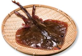 간재미는 막걸리에 씻은 다음 무와 미나리, 고춧가루를 넣고 버무린 무침이 별미다.