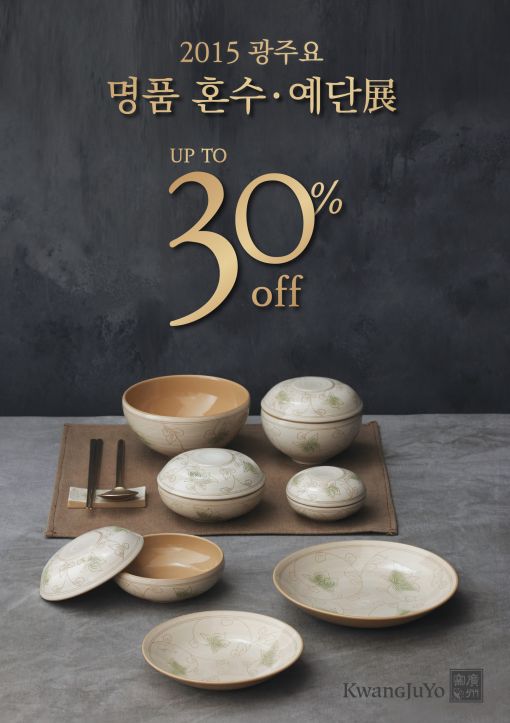 $pos="C";$title="광주요";$txt="";$size="510,724,0";$no="201502230942591296072A_1.jpg";@include $libDir . "/image_check.php";?>[아시아경제 조강욱 기자] 광주요(대표 조태권)가 새봄 본격적인 웨딩 시즌을 맞아 내달 31일까지 고품격 예단 및 혼수 제품을 최대 30% 할인된 가격에 선보이는 '명품 혼수·예단전'을 진행한다.