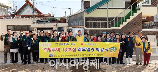 광주 남구는 23일 양림동에서 최영호 남구청장을 비롯한 양림동 동복지호민관협의체, 사랑봉사단 등 30여 명이 참여한 가운데 주거환경이 취약한 소외계층 세대를 위한 무료 집수리 프로젝트 ‘희망주택 13호점 리모델링 착공식’을 가졌다. 사진제공=광주시 남구