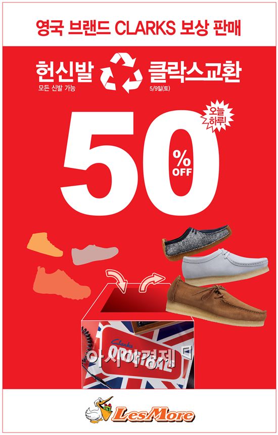 9일 헌 신발 가져오는 고객에게 클락스 신발 50% 할인