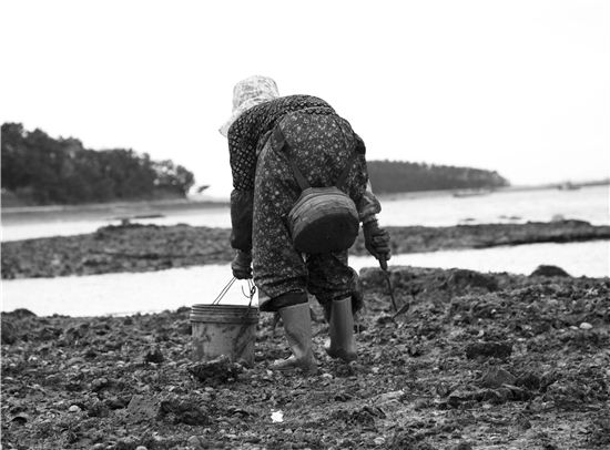 땅거미 지도록 갯벌에서 씨름을 하신다