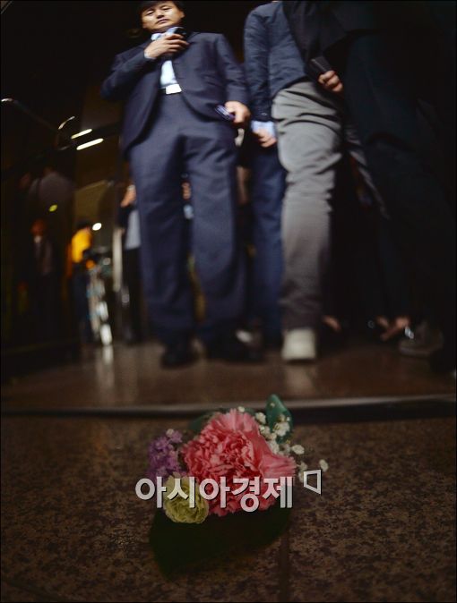 [아시아경제 윤동주 기자] 박범훈 전 청와대 교육문화수석의 각종 비리 의혹과 관련해 박용성 전 두산그룹 회장이 검찰조사를 받기 위해 15일 서울 서초구 중앙지검으로 출석한 가운데 중앙대 학생들이 박 전 회장에게 달아준 카네이션이 땅에 떨어져 있다.