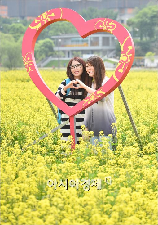 [아시아경제 윤동주 기자] 2015 한강 서래섬 유채꽃 축제가 열린 17일 서울 서초구 서래섬을 찾은 시민들이 유채꽃 밭 사이에서 사진을 찍으며 즐거운 시간을 보내고 있다.
