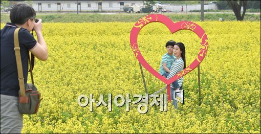 [아시아경제 윤동주 기자] 2015 한강 서래섬 유채꽃 축제가 열린 17일 서울 서초구 서래섬을 찾은 시민들이 유채꽃 밭 사이에서 사진을 찍으며 즐거운 시간을 보내고 있다.