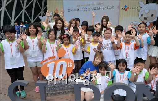 [아시아경제 윤동주 기자] CJ도너스캠프 창립10주년을 맞아 17일 서울 여의도 물빛무대에서 공부방 어린이들과 걸그룹 레드벨벳 맴버들이 10주년 기념 퍼포먼스를 갖고 있다. CJ그룹은 CJ도너스캠프를 통해 2005년부터 10년간 교육 후원을 통해 청소년들이 꿈을 끼워 건강한 사회인으로 성장하도록 지원하고 있다.