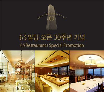 다음달 1일부터 10일까지 슈치쿠를 시작으로 11일부터 워킹온더클라우드, 21일부터 백리향에서 각각 10일간 30% 할인 혜택을 제공한다. 30주년 기념 주류는 최대 63% 할인되며 응모권 추첨을 통해 로맨틱 연인 패키지, 63빌딩 모형 크리스탈 기념품 등의 선물도 준다.