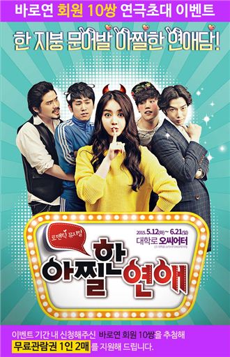 [아시아경제 최서연 기자] 결혼정보회사 바로연은 연인들에게 재미와 감동을 안겨줄 로맨틱 코미디 창작 뮤지컬 ‘아찔한 연애’ 관람 초대 이벤트를 진행한다고 29일 밝혔다.