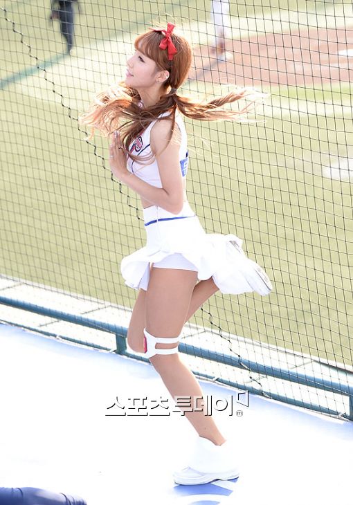 [아시아경제 온라인이슈팀] 두산 치어리더가 7일 오후 서울 양천구 목1동 목동야구장에서 열린 2015 타이어뱅크 KBO 리그 두산 베어스-넥센 히어로즈 경기에서 응원을 하고 있다.
