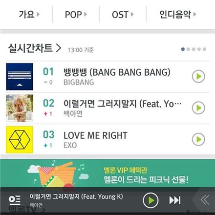 ‘이럴거면 그러지말지’는 12일 오후 4시 음원사이트 멜론 실시간 차트 2위를 차지했다. 또 올레뮤직 3위, 지니뮤직 1위, 벅스뮤직 3위, 엠넷뮤직 4위를 기록하며 순항 중이다.