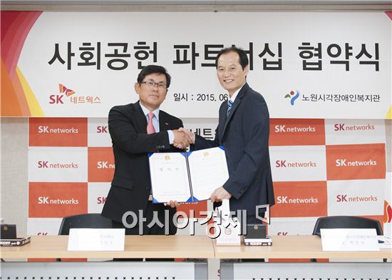 SK네트웍스는 2010년 시각장애인전용 단말기 배포 및 개통작업을 통해 노원시각장애인복지관과 인연을 맺기 시작했으며 그 동안 ‘시각장애인용 대체자료 제공’ 및 ‘시각장애아동 대상 행복한 동행’ 등 다양한 사회공헌활동을 함께 해 왔다.