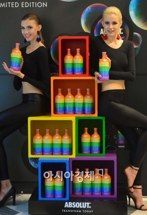 [아시아경제 백소아 기자] 페르노리카 코리아가 30일 서울 중구 신세계백화점 본점에서 여섯가지 색깔의 병으로 출시된 리미티드 에디션 '앱솔루트 컬러스'를 선보이고 있다.