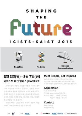 KAIST(총장 강성모)학생단체 아이시스츠(ICISTS)는 오는 8월 3~7일 KAIST와 호텔 ICC에서 전 세계 대학생 300여 명이 참여한 가운데 국제 학술대회 'ICISTS-KAIST 2015'를 개최한다. 2005년 시작된 'ICISTS-KAIST(International Conference for the Integration of Science, Technology and Society)'는 KAIST 학부생들이 전 세계 대학생들과 명사들을 초청해 과학기술과 사회가 소통하는 방법을 함께 고민하고 토론하는 자리이다.