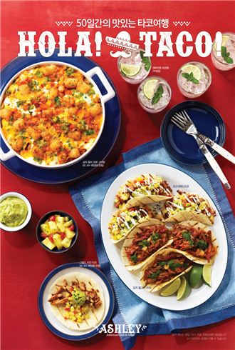 [아시아경제 최서연 기자] 애슐리가 본격적인 여름을 맞아 7일 ‘50일 간의 맛있는 타코 여행’ 콘셉트의 신메뉴 ‘올라 타코(HOLA TACO)’를 출시했다.