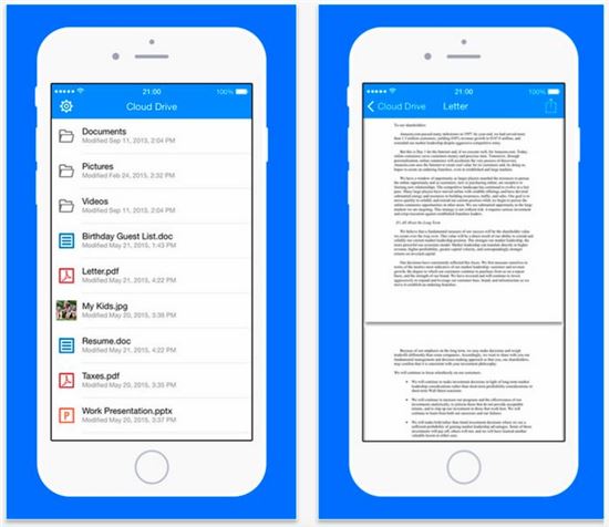 클라우드 드라이브 앱은 아이폰과 아이패드에서 콘텐츠를 더 매끄럽게 볼 수 있고, 파일을 관리하는 것도 한결 수월하다. 또한 클라우드 드라이브 앱에서는 사진, 문서 외에 이용자가 업로드한 음악이나 비디오도 함께 재생할 수 있다.